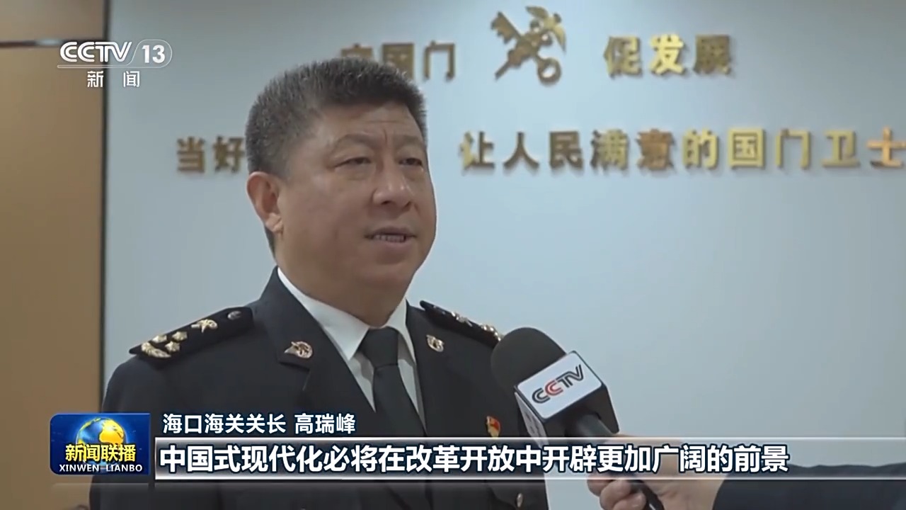 ??诤jP(guān)關(guān)長 高瑞峰:習(xí)近平主席在新年賀詞中指出,中國式現(xiàn)代化必將在改革開放中開辟更加廣闊的前景。今年,海南自貿(mào)港將實(shí)現(xiàn)封關(guān)運(yùn)作。我們要始終沿著習(xí)近平總書記指引的方向前進(jìn),不斷深化海關(guān)監(jiān)管制度集成創(chuàng)新,努力把海南自由貿(mào)易港打造成為引領(lǐng)我國新時代對外開放的重要門戶。