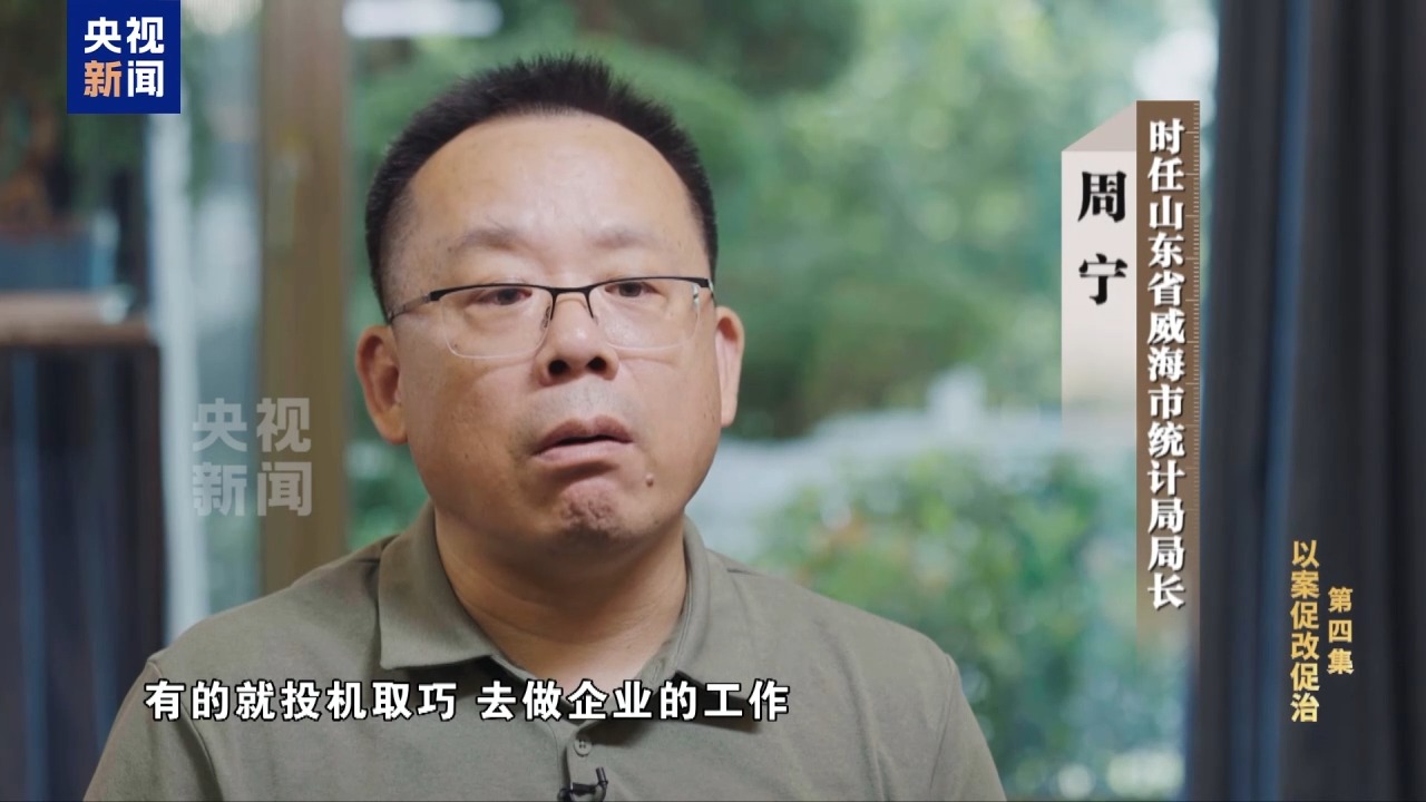 時任威海市統(tǒng)計(jì)局局長 周寧:壓力還是比較大的,有的就投機(jī)取巧,去做企業(yè)的工作,說你多報(bào)點(diǎn)數(shù),多報(bào)點(diǎn)什么。但是也有的是什么,每個月直接就代替企業(yè)報(bào)了,有這種情況。