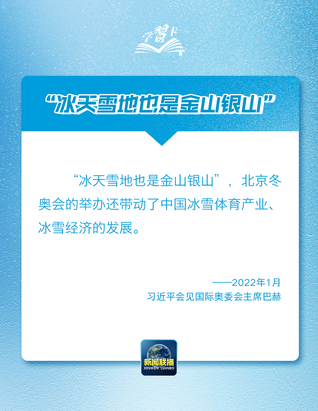 “讓更多人參與到冰雪運(yùn)動(dòng)中來”是習(xí)近平總書記牽掛的民生事,也是建設(shè)新時(shí)代體育強(qiáng)國(guó)的題中之義。近年來,習(xí)近平總書記強(qiáng)調(diào)要大力發(fā)展冰雪體育產(chǎn)業(yè)、冰雪經(jīng)濟(jì),推動(dòng)我國(guó)冰雪運(yùn)動(dòng)跨越式發(fā)展,對(duì)體育強(qiáng)國(guó)作出一系列重要論述。一起學(xué)習(xí)↓