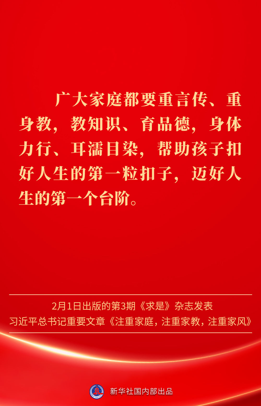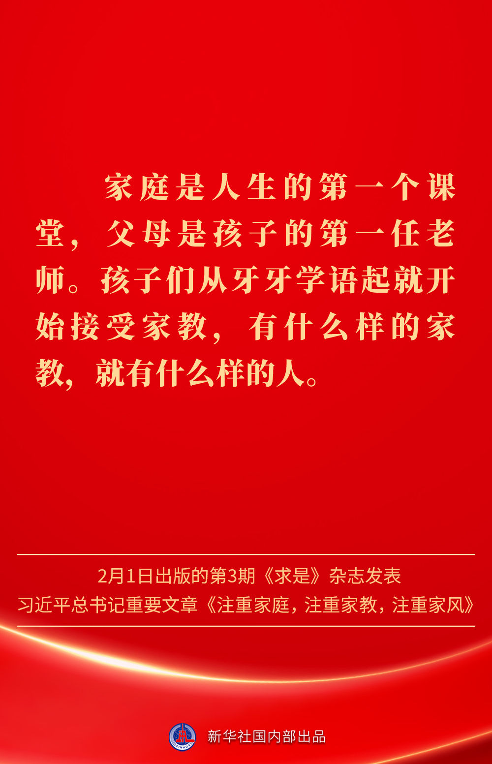 萬家團(tuán)圓共慶新春佳節(jié)之際,2月1日出版的第3期《求是》雜志發(fā)表習(xí)近平總書記重要文章《注重家庭,注重家教,注重家風(fēng)》。為什么要注重家庭、家教、家風(fēng)?如何做好家庭文明建設(shè)?習(xí)近平總書記這樣闡述——