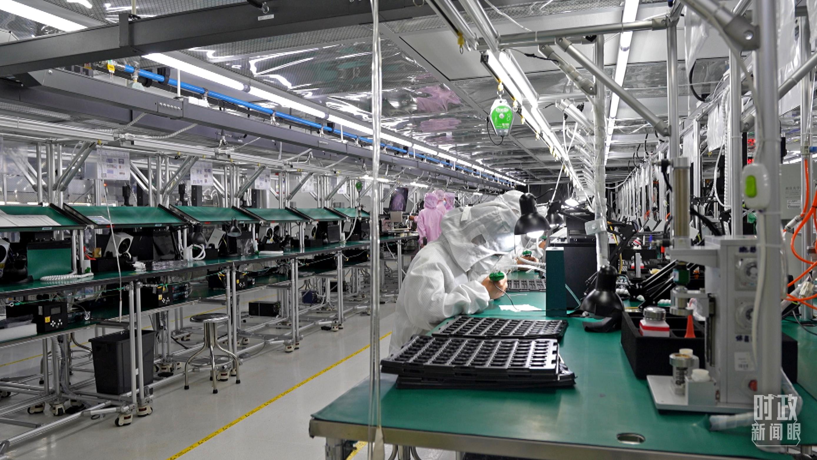四川省宜賓市極米光電有限公司的無塵車間光機組裝線。(總臺央視記者范學禹拍攝)
