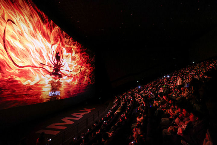 2025年2月25日,觀眾在貴陽越界影城IMAX影廳內(nèi)觀看電影《哪吒2》。