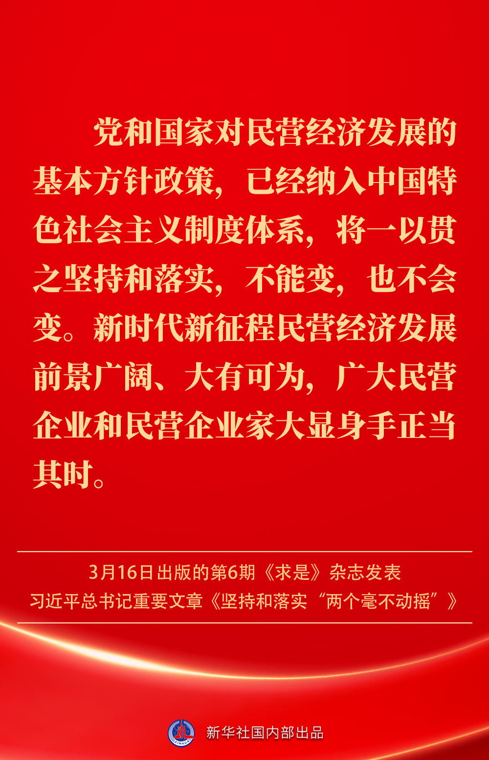 3月16日出版的第6期《求是》雜志發(fā)表習(xí)近平總書記重要文章《堅(jiān)持和落實(shí)“兩個(gè)毫不動(dòng)搖”》。這是習(xí)近平總書記2013年11月至2025年2月期間有關(guān)重要論述的節(jié)錄。如何認(rèn)識(shí)“兩個(gè)毫不動(dòng)搖”?公有制經(jīng)濟(jì)和非公有制經(jīng)濟(jì)是怎樣的關(guān)系?習(xí)近平總書記這樣闡述——