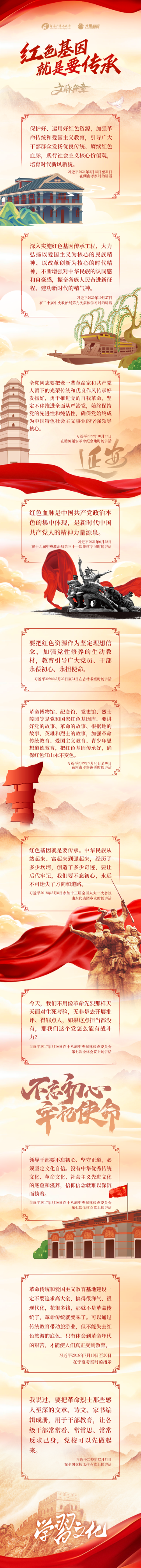 習(xí)近平總書(shū)記高度重視紅色基因傳承,發(fā)表了一系列重要講話,引導(dǎo)我們賡續(xù)紅色血脈,激發(fā)愛(ài)國(guó)熱情,振奮民族精神。我們一起學(xué)習(xí)。