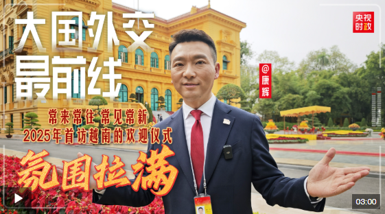 黃色的標(biāo)志性建筑,交相輝映的五星紅旗和金星紅旗,手持中越兩國國旗的小朋友……有沒有一種熟悉又親切的感覺?時(shí)隔一年多,習(xí)近平再次訪越,恰似走親戚、串門般自然??旄按髧饨蛔钋熬€”的腳步,一同前往歡迎儀式現(xiàn)場,感受這份熱烈與友好!