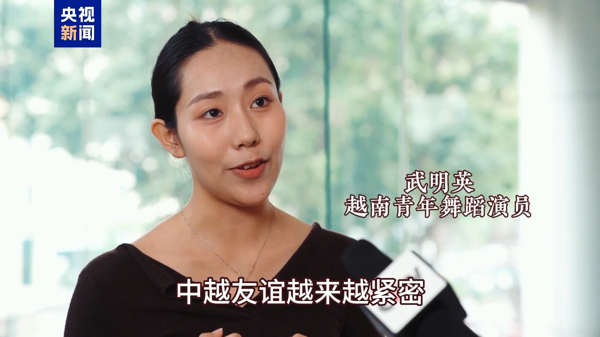 武明英 越南青年舞蹈演員:我11歲就來到了廣西藝術(shù)學(xué)院。我用中國舞蹈的元素跟越南舞蹈元素融合在一起,就是相當(dāng)于把兩國的文化交流展現(xiàn)給大家。