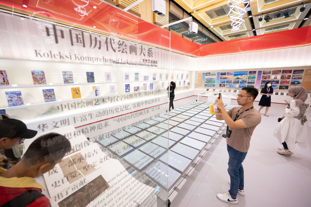 2023年5月26日,觀眾在馬來西亞吉隆坡舉行的第40屆吉隆坡國際書展上觀看“中國歷代繪畫大系”展覽。由浙江大學(xué)、浙江省文物局編纂,浙江大學(xué)出版社出版的“中國歷代繪畫大系”,收錄了海內(nèi)外263家文博機(jī)構(gòu)的紙、絹(含帛、綾)、麻等材質(zhì)的中國古代繪畫藏品12000余件(套),涵蓋了絕大部分傳世的“國寶”級(jí)繪畫珍品。