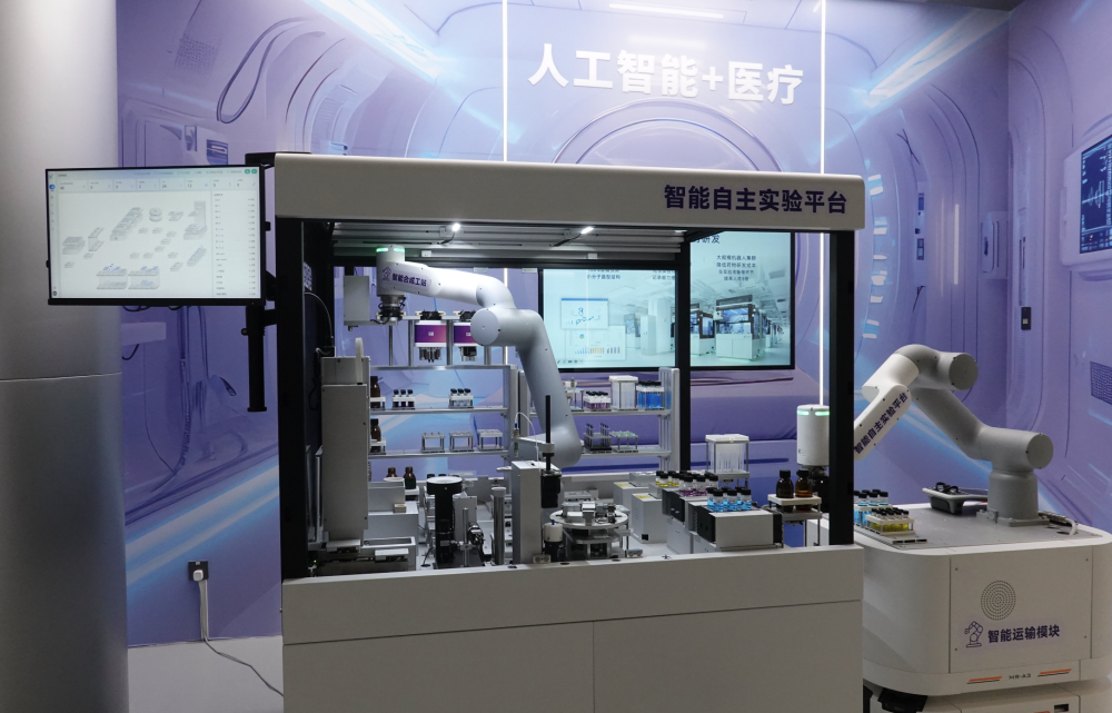 2025年4月29日,在“模速空間”展示用于藥物研發(fā)的智能自主實(shí)驗(yàn)平臺(tái)。