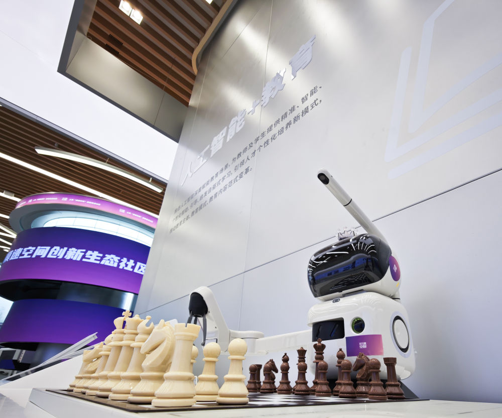 這是在“模速空間”展示的一款A(yù)I下棋機(jī)器人,可以提供實(shí)現(xiàn)對(duì)弈、AI打譜等多項(xiàng)功能(2025年4月29日攝)。