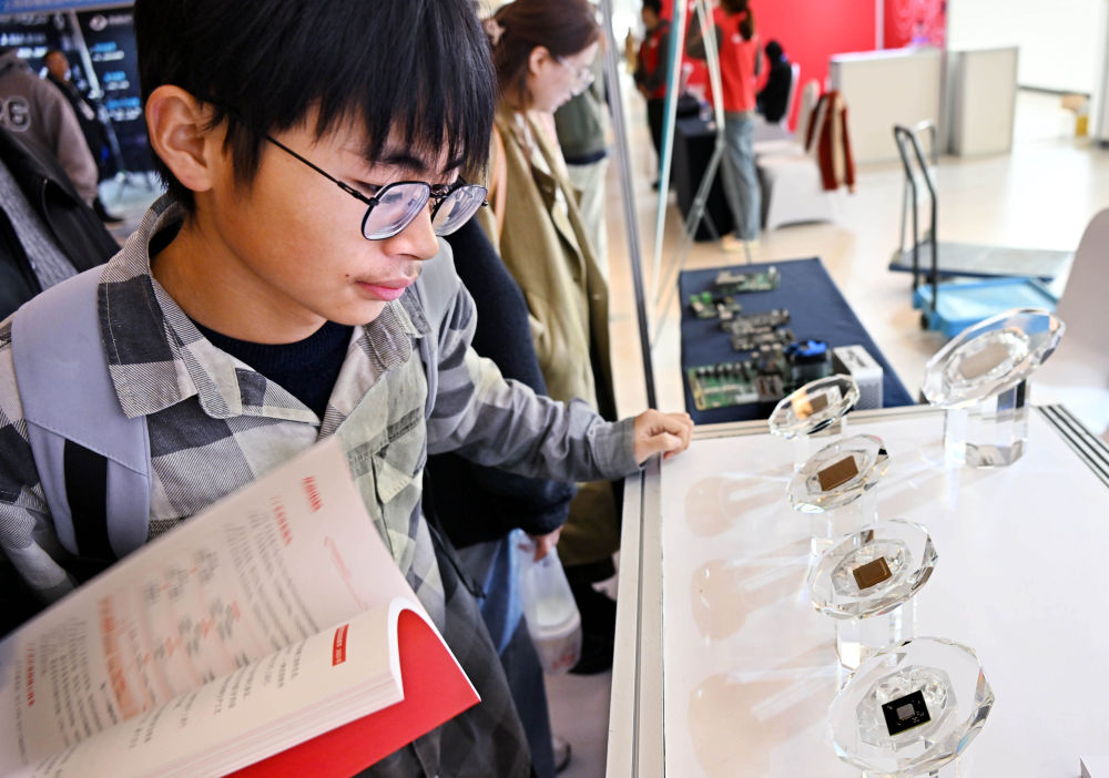 2024年11月2日,與會(huì)者在2024中國(guó)自動(dòng)化大會(huì)展覽區(qū)觀看國(guó)產(chǎn)芯片。當(dāng)日,2024中國(guó)自動(dòng)化大會(huì)在山東省青島市開幕。大會(huì)以“新質(zhì)發(fā)展 智控未來”為主題,聚焦自動(dòng)化與人工智能深度融合,探討新產(chǎn)業(yè)、新技術(shù)的創(chuàng)新發(fā)展。