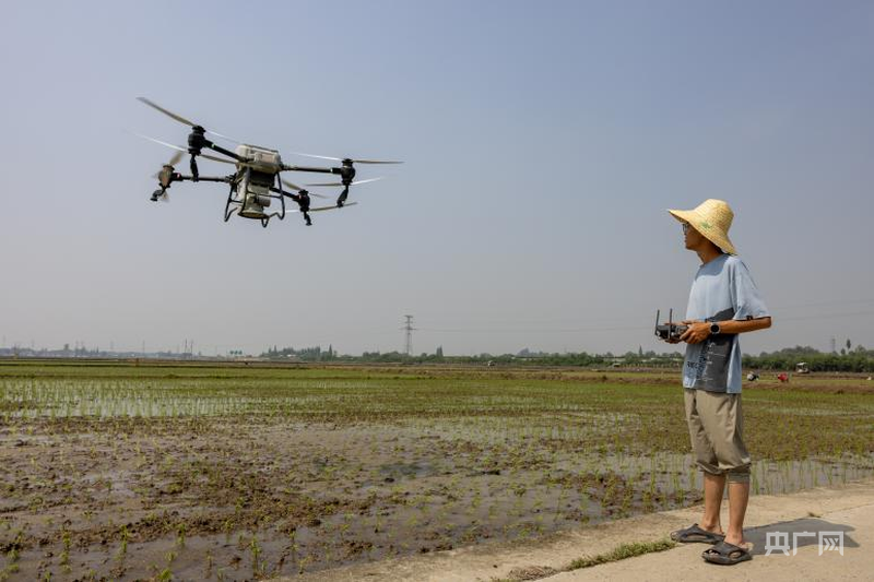 新農(nóng)人王海聰正在操控植保無人機(jī)(央廣網(wǎng)發(fā) 侯建明 攝)