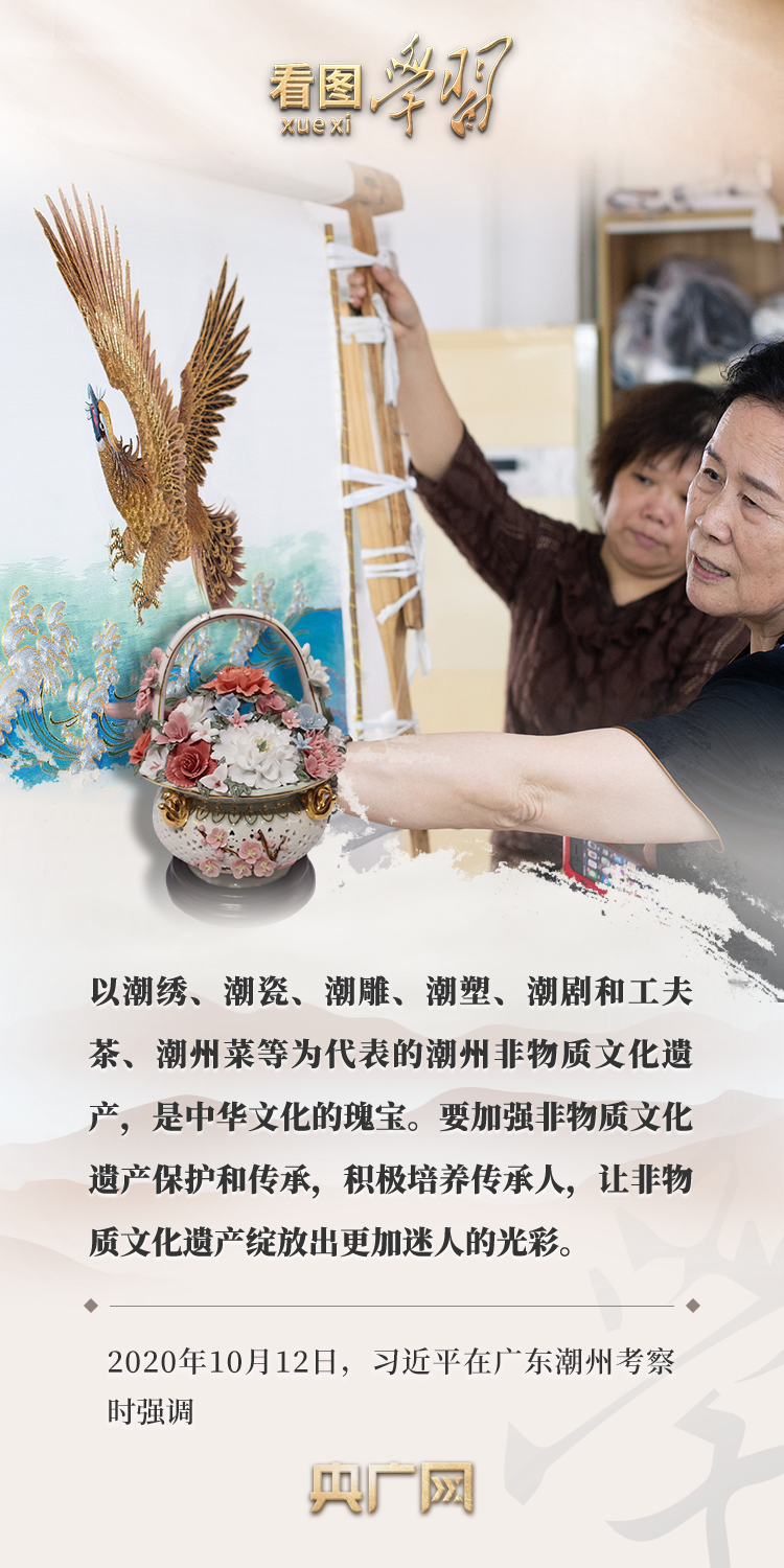 從古典民族史詩(shī)《格薩(斯)爾》到潮繡、潮瓷、潮劇和工夫茶,再到漢中藤編、常德絲弦……在各地考察調(diào)研時(shí),習(xí)近平總書(shū)記曾多次就文化傳承發(fā)展、非物質(zhì)文化遺產(chǎn)保護(hù)作出重要指示,強(qiáng)調(diào)要“讓非物質(zhì)文化遺產(chǎn)綻放出更加迷人的光彩”。