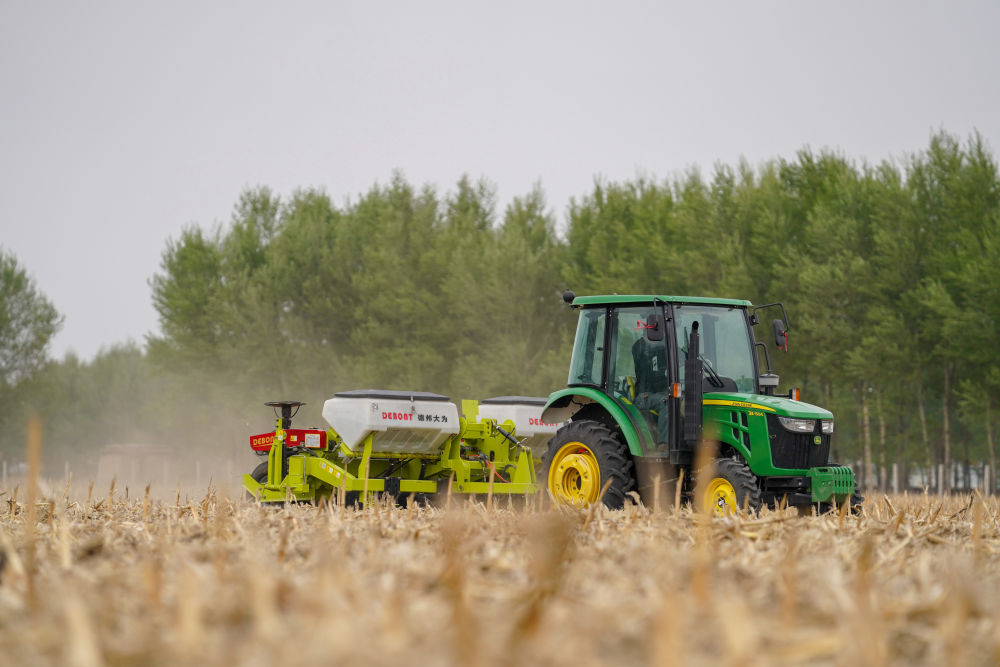 經(jīng)過多年試驗(yàn)和推廣,東北逐步形成以秸稈覆蓋、少耕免耕為特點(diǎn)的吉林“梨樹模式”等多種行之有效的保護(hù)性耕作模式。這是2020年5月7日,吉林省四平市梨樹縣的農(nóng)民駕駛免耕播種機(jī)播種玉米。