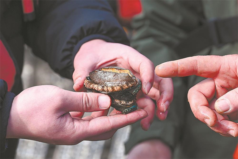 如今,生長(zhǎng)在不同海域?qū)用娴孽U魚(yú)、壇紫菜、仙女蛤等,已成為平潭引以為豪的海洋物產(chǎn)。據(jù)統(tǒng)計(jì),平潭鮑魚(yú)年產(chǎn)量已近4.8萬(wàn)噸,產(chǎn)值超20億元。其中,品質(zhì)上乘的“平潭鮑”更成為當(dāng)?shù)叵蚝6d的“金名片”。