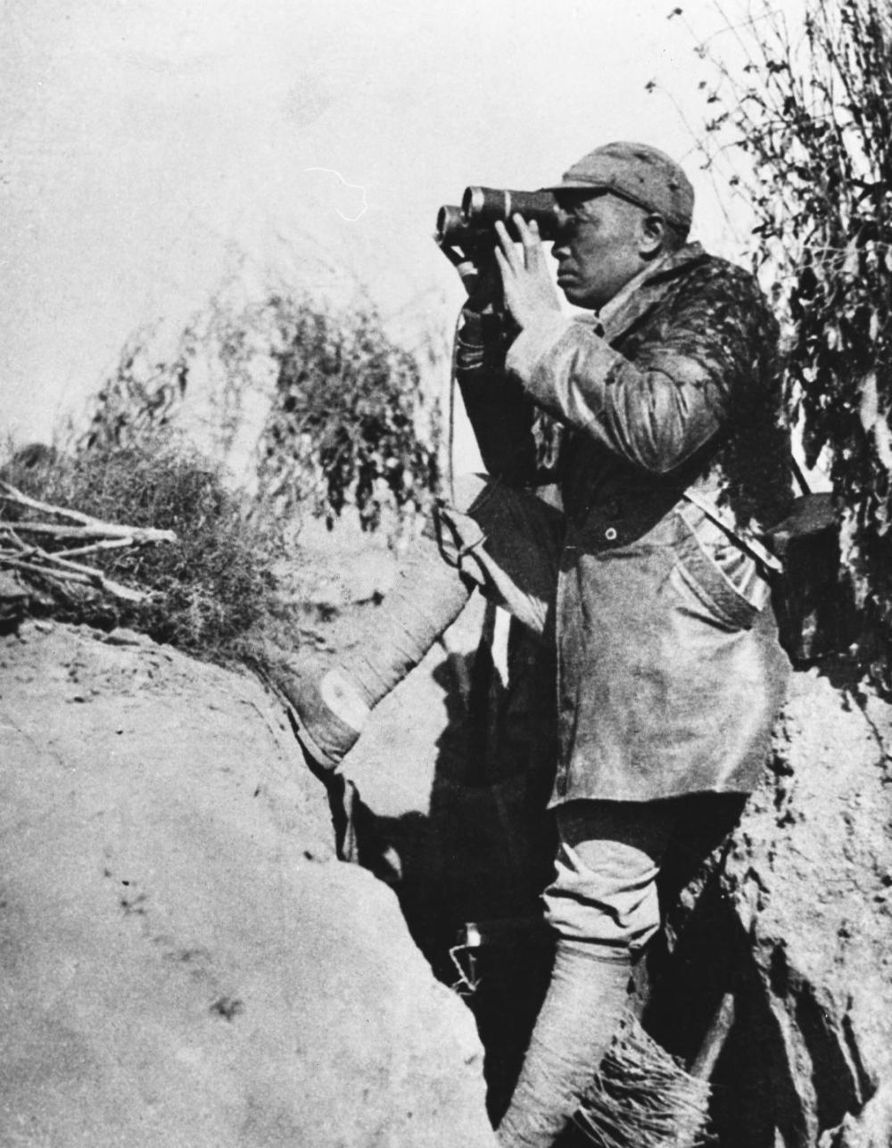 百團大戰(zhàn),是抗日戰(zhàn)爭中八路軍在華北地區(qū)發(fā)動的一次規(guī)模最大、持續(xù)時間最長的進攻戰(zhàn)役,先后有105個團約20余萬人參加,僅前3個半月,就作戰(zhàn)1824次,斃傷日、偽軍2.58萬人,俘虜1.8萬余人。這是彭德懷身處前線指揮百團大戰(zhàn)(中國照片檔案館館藏)。