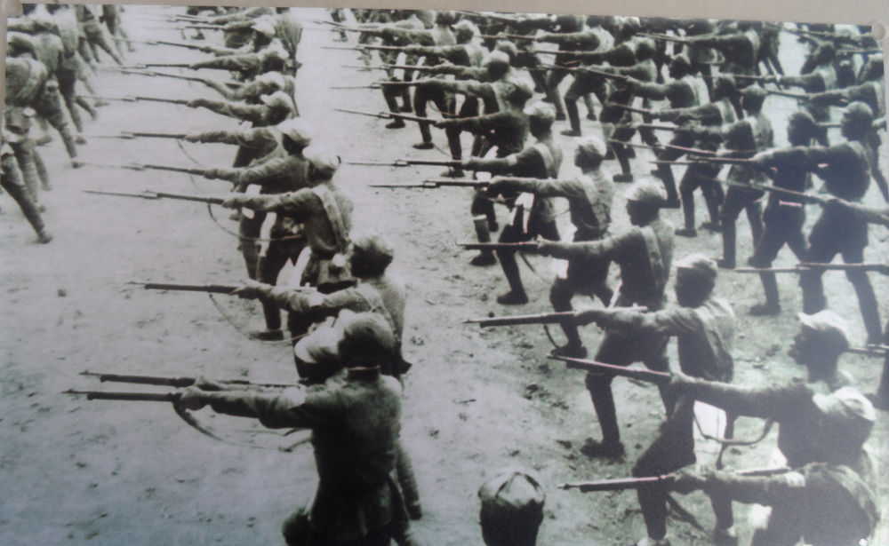 雄連”榮譽稱號。這是抗戰(zhàn)時期,8連官兵苦練刺殺(資料照片)。