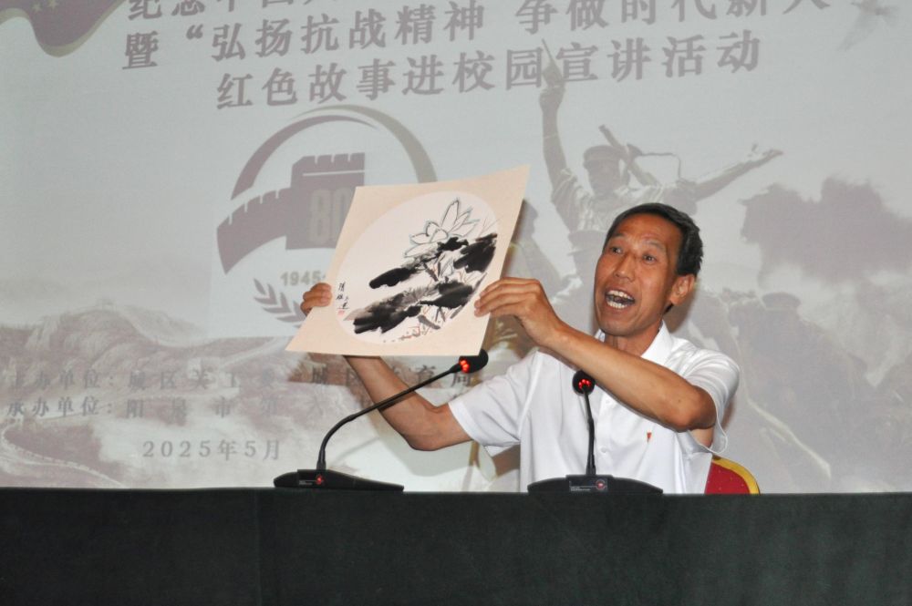 出生在陽泉市正太鐵路破襲戰(zhàn)沿線區(qū)域的姚永田,從小聽抗戰(zhàn)故事長大。他利用課余時間研究家鄉(xiāng)抗戰(zhàn)史、編寫校本教材,并在校園義務(wù)宣講紅色故事100余場,努力讓紅色精神在年輕一代心中生根發(fā)芽。這是2025年5月26日,姚永田在陽泉市第六中學(xué)為學(xué)生們宣講。