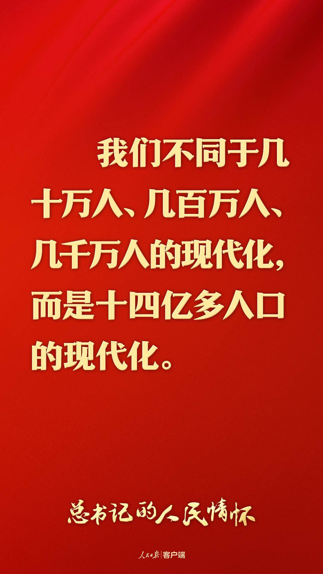 現(xiàn)代化的本質(zhì)是人的現(xiàn)代化。我們不同于幾十萬人、幾百萬人、幾千萬人的現(xiàn)代化,而是14億多人口的現(xiàn)代化。