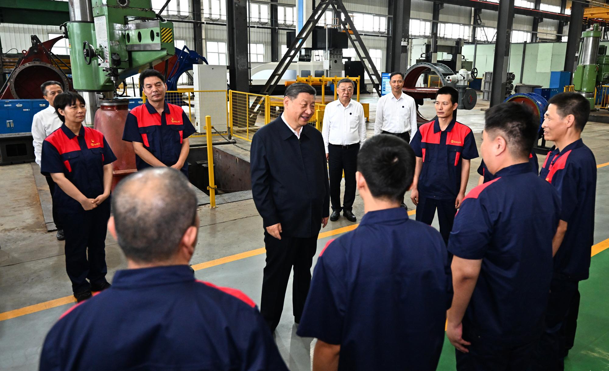 2025年7月7日,習(xí)近平總書(shū)記在山西陽(yáng)泉閥門(mén)股份有限公司考察時(shí),同企業(yè)員工親切交流。