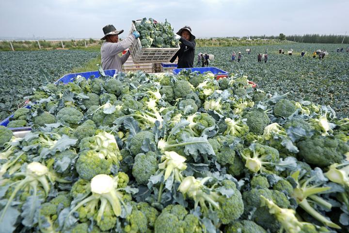 2025年7月18日,工作人員在寧夏固原市原州區(qū)彭堡鎮(zhèn)萬畝冷涼蔬菜基地運輸西蘭花。固原依托高海拔、氣候冷涼等“冷資源”優(yōu)勢,大力發(fā)展冷涼蔬菜產(chǎn)業(yè),著力打造“六盤山冷涼蔬菜”區(qū)域公用品牌。目前已建成冷涼蔬菜規(guī)?;N植基地130余個,種植面積穩(wěn)定在50萬畝,年產(chǎn)鮮菜200萬噸以上。“六盤山冷涼蔬菜”這張打造的“綠色名片”,已成為當?shù)剜l(xiāng)村振興發(fā)展之路上的“熱產(chǎn)業(yè)”