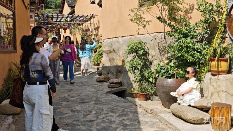 游客在田鋪大塆游玩拍照(央廣網(wǎng)發(fā) 余俊 攝)