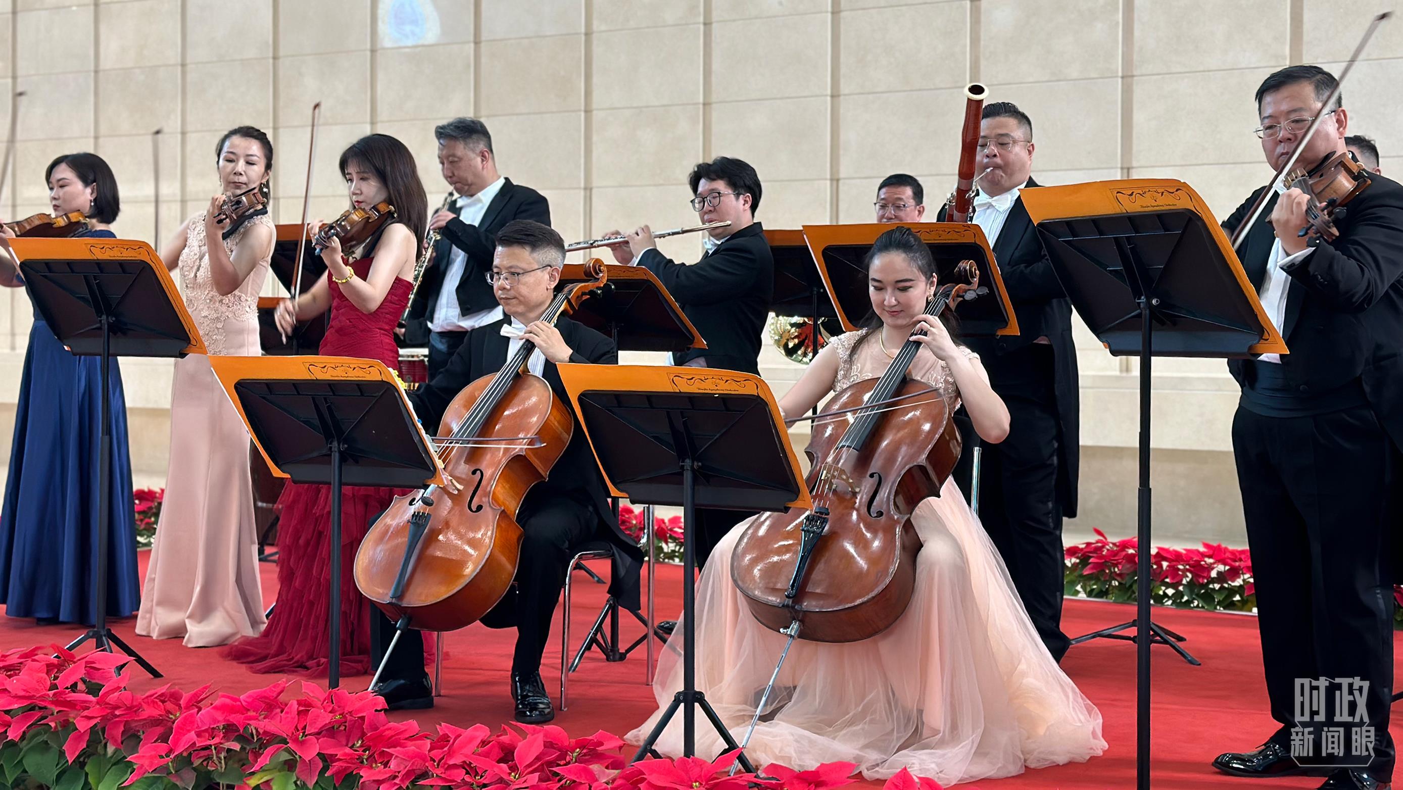 天津交響樂團(tuán)演奏與會(huì)各國(guó)知名樂曲。(總臺(tái)央視記者盧心雨拍攝)
