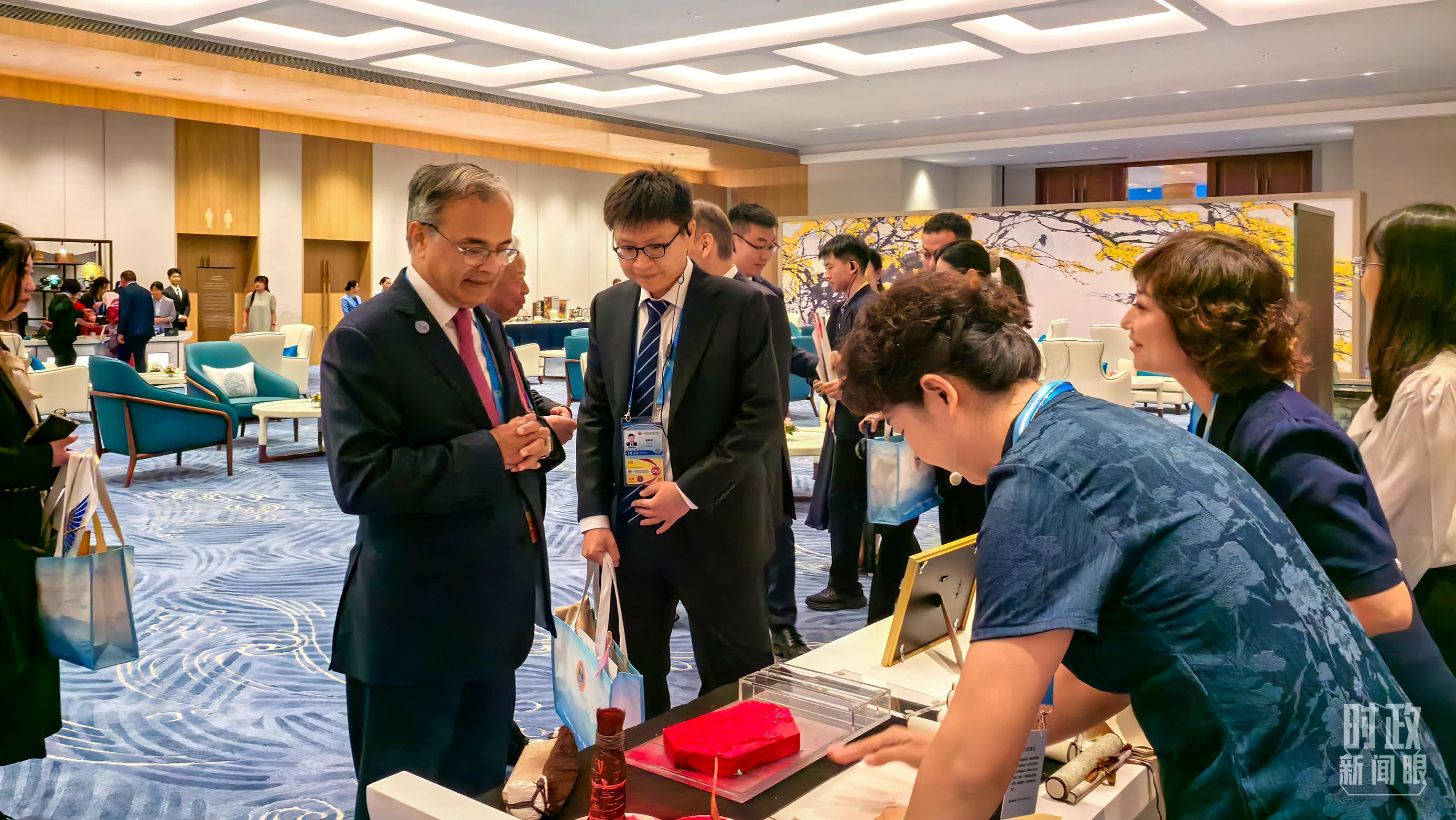 國(guó)際貴賓參觀天津非物質(zhì)文化遺產(chǎn)展示。(總臺(tái)央視記者王子杭、姚瑤拍攝)