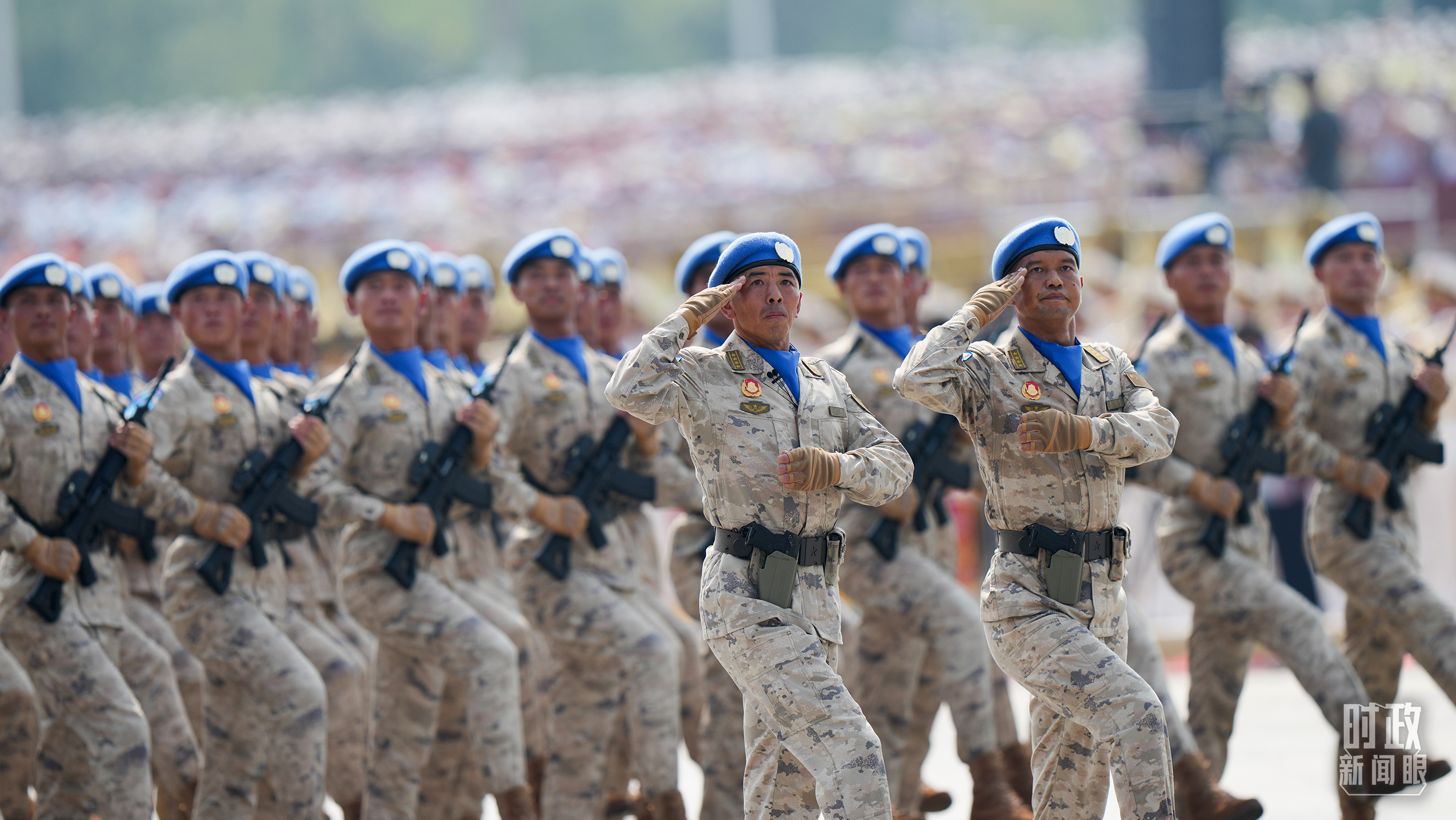 閱兵式上,維和部隊(duì)方隊(duì)闊步走來(lái)。今年是中國(guó)軍隊(duì)參加聯(lián)合國(guó)維和行動(dòng)35周年,累計(jì)派遣超過(guò)5萬(wàn)名維和官兵,中國(guó)是聯(lián)合國(guó)安理會(huì)常任理事國(guó)中派出維和人員最多的國(guó)家?!爸袊?guó)藍(lán)盔”不懼艱險(xiǎn)、不辱使命,以熱血鍛鑄和平盾牌,用行動(dòng)譜寫大國(guó)擔(dān)當(dāng),已經(jīng)成為守護(hù)世界和平安寧的關(guān)鍵穩(wěn)定力量。