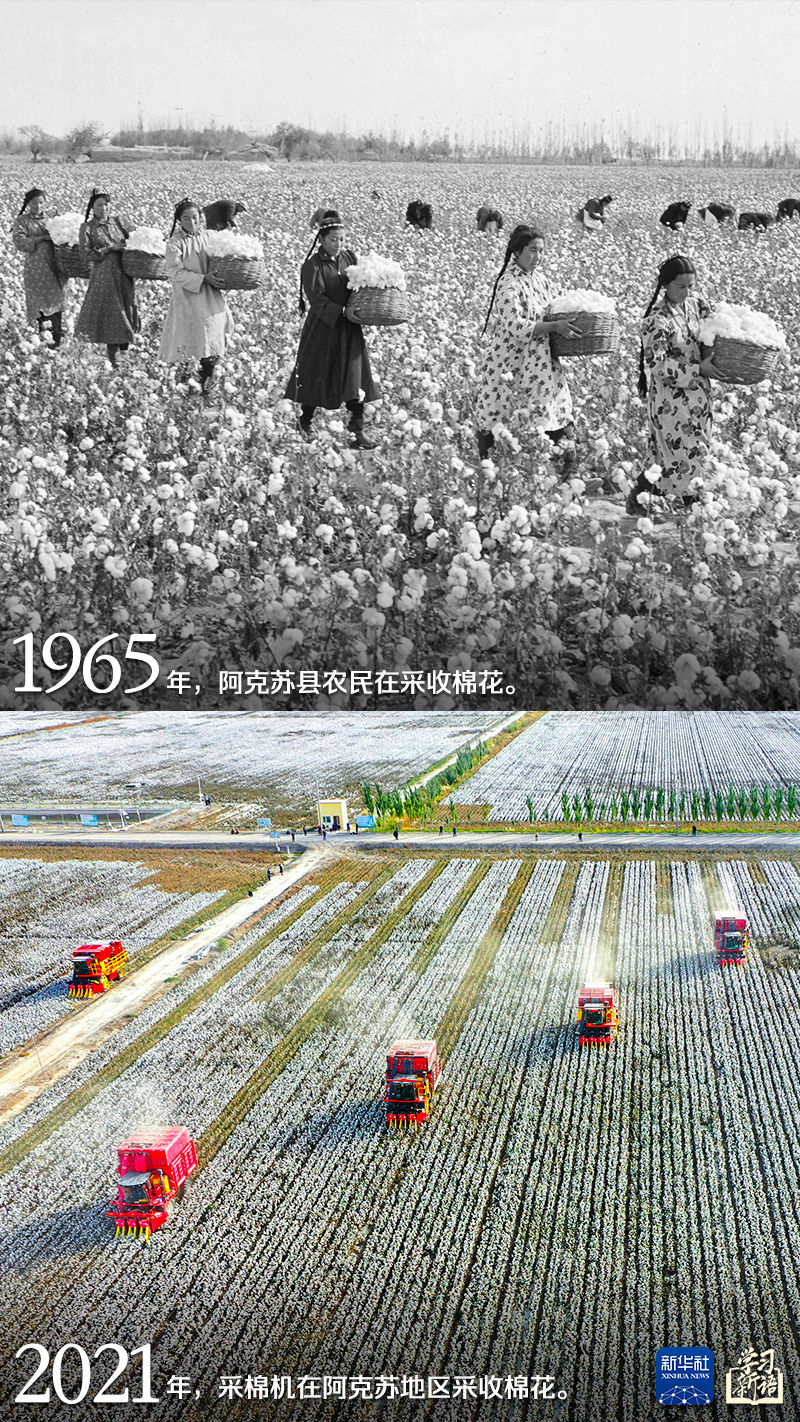 我們選取成就展上的一組照片,通過新舊對比,用鮮活的事實(shí)展現(xiàn)新疆取得的輝煌成就,一起感受翻天覆地的發(fā)展變化。