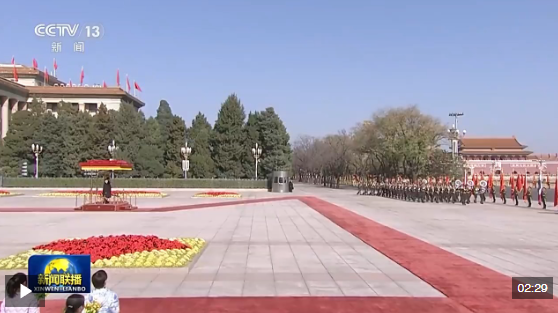 哇集拉隆功抵達(dá)時,禮兵列隊致敬。習(xí)近平同哇集拉隆功登上檢閱臺,軍樂團(tuán)奏中國國歌和泰國頌圣歌,天安門廣場鳴放禮炮21響。哇集拉隆功在習(xí)近平陪同下檢閱中國人民解放軍儀仗隊,并觀看分列式。
