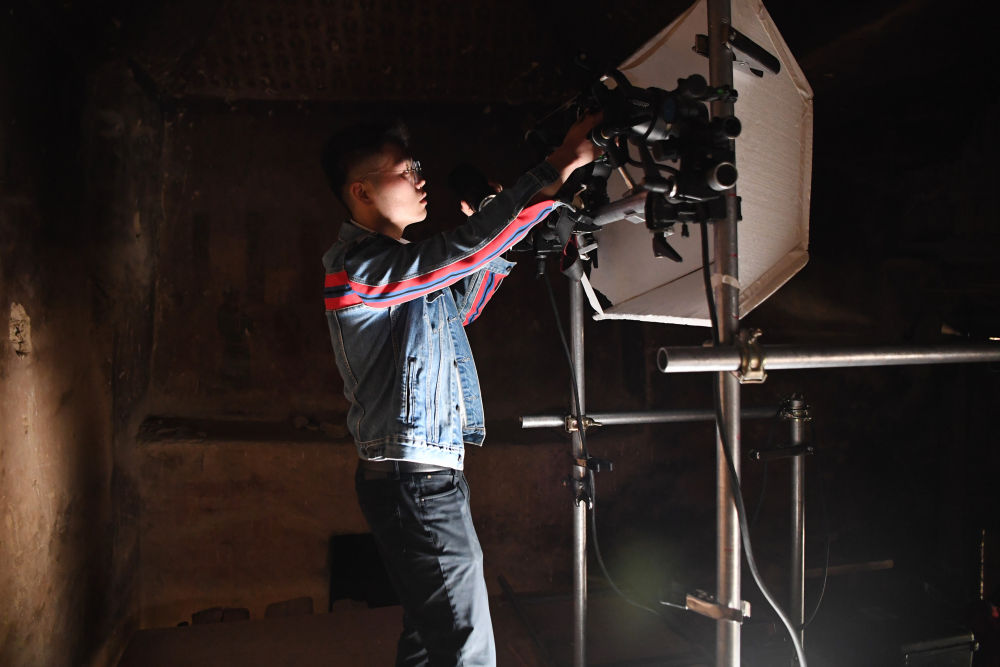 2023年4月25日,敦煌研究院文物數(shù)字化保護團隊圖像采集人員熊業(yè)騰在洞窟內(nèi)調(diào)試設備,準備采集壁畫圖像。30多年前,敦煌研究院便嘗試以數(shù)字技術讓古老石窟“芳華永駐”。2016年,“數(shù)字敦煌”資源庫上線,首次向全球免費共享30個敦煌石窟的高清圖像和全景漫游,用戶足不出戶就能欣賞到高清的敦煌文化數(shù)字資源,目前訪問用戶遍布全球78個國家,累計訪問量超過2000萬次。