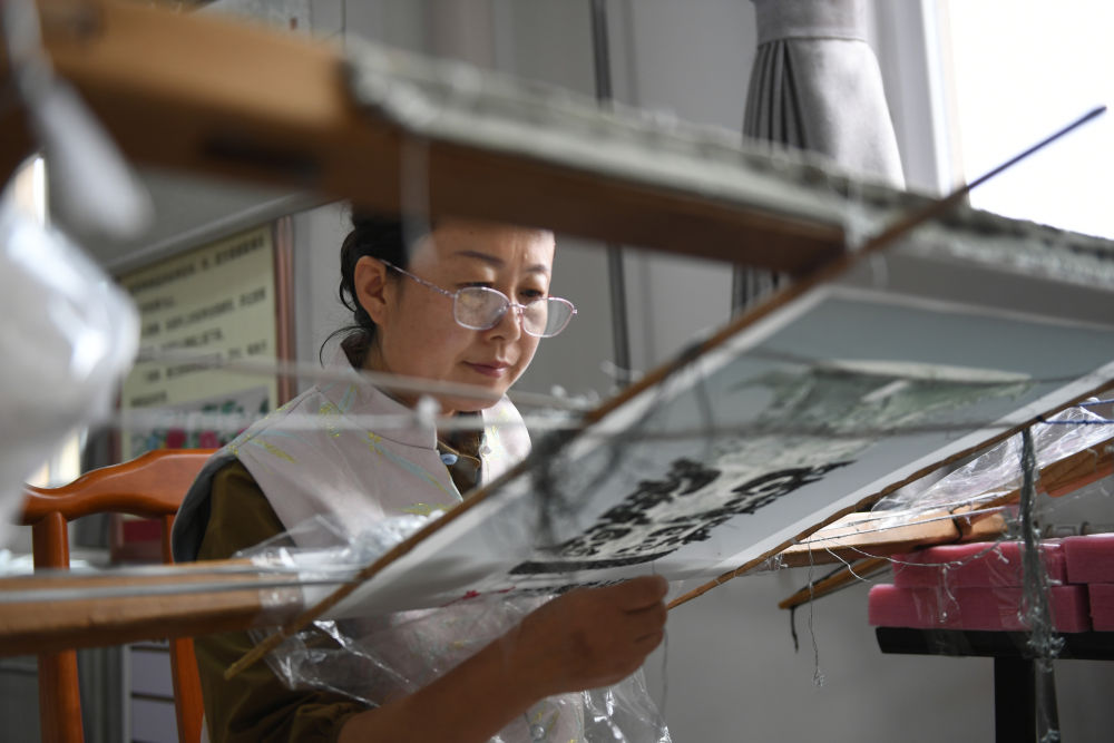 2023年9月8日,陜西千陽繡娘王紅燕在西秦刺繡文化產(chǎn)業(yè)園內(nèi)刺繡。陜西千陽縣是國家級非物質(zhì)文化遺產(chǎn)“西秦刺繡”的重要發(fā)祥地和傳承地。近年來,千陽縣將西秦刺繡作為助農(nóng)增收的重要產(chǎn)業(yè),推動(dòng)非遺項(xiàng)目產(chǎn)業(yè)化發(fā)展,助力鄉(xiāng)村振興。