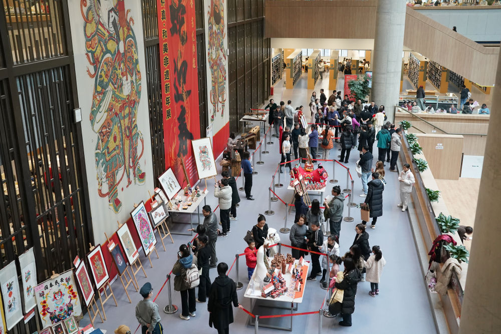 2025年1月1日,觀眾在位于西安的陜西省圖書館高新館區(qū)內(nèi)參觀一場非遺文化展覽。西安市持續(xù)推出各類主題和形式的公共文化活動(dòng),為市民、游客提供豐富的精神文化生活。