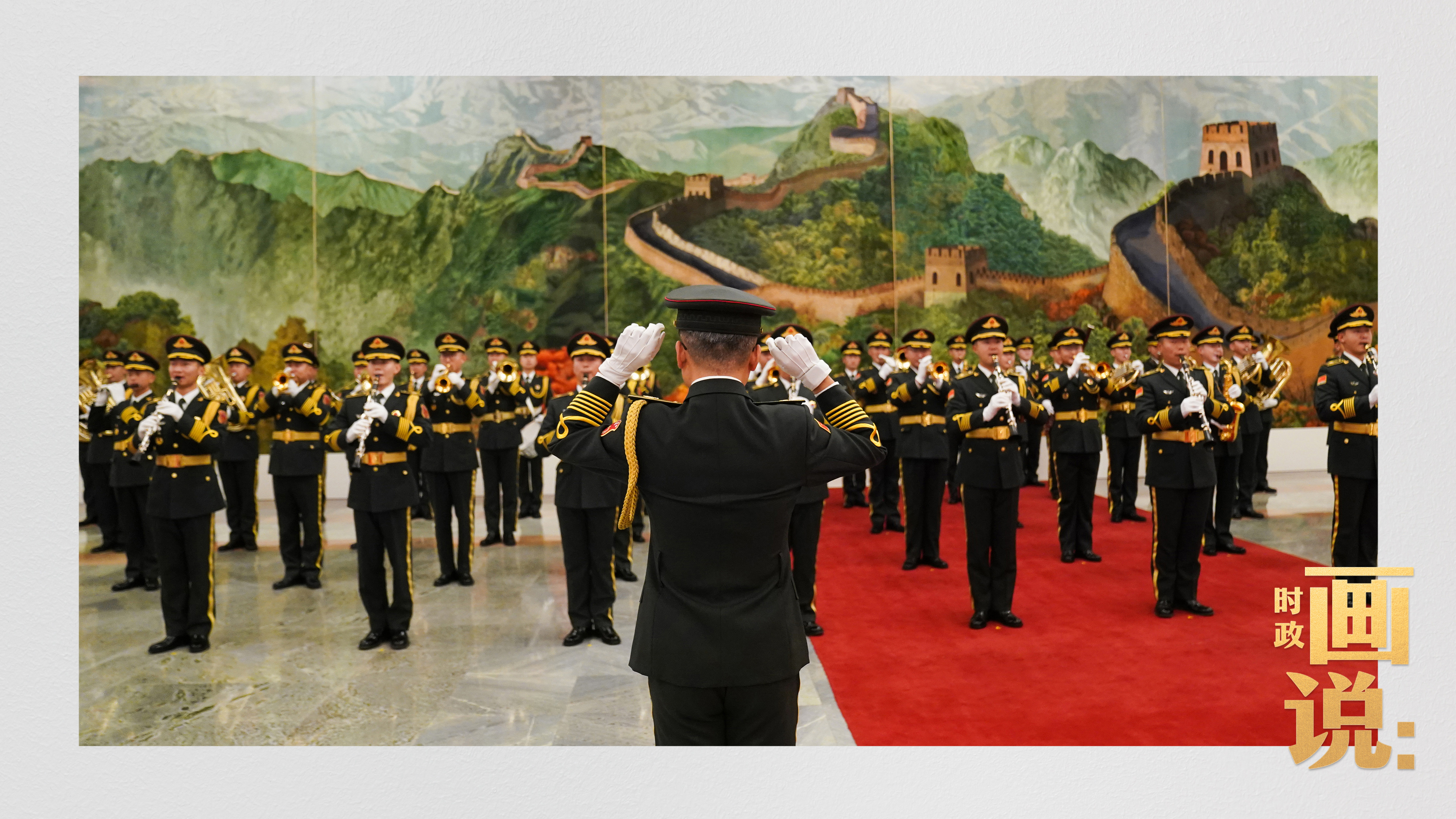 △習近平和夫人彭麗媛在人民大會堂北大廳為馬克龍和夫人布麗吉特舉行歡迎儀式