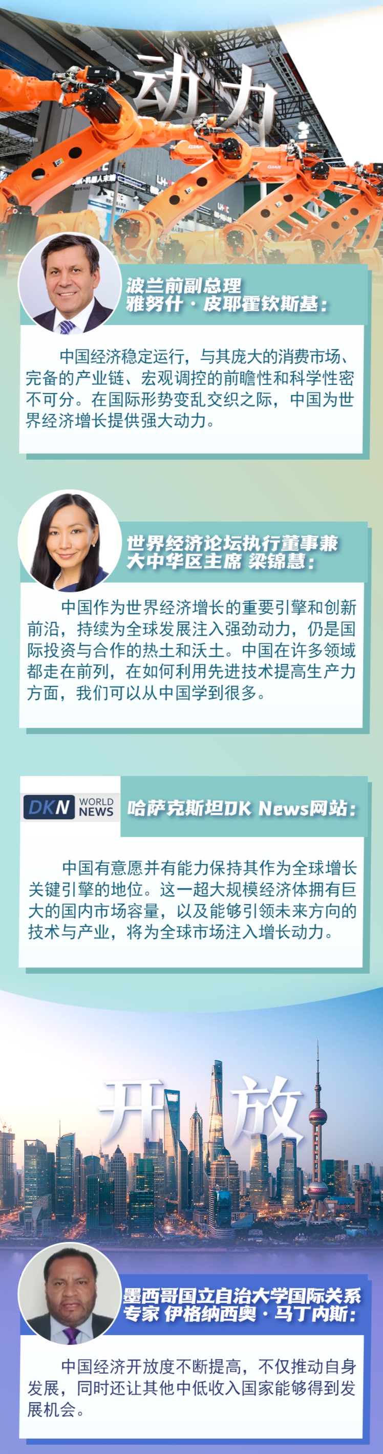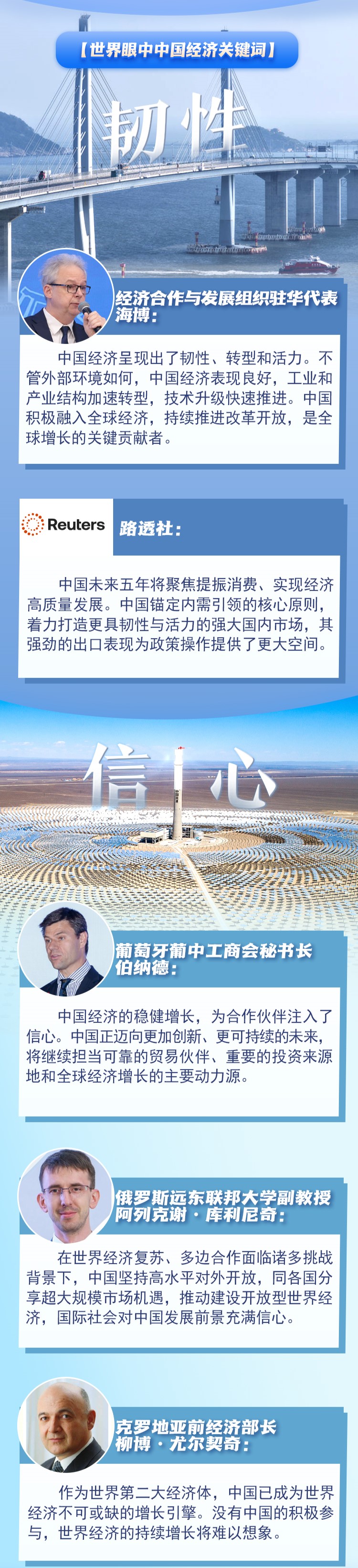 近期,多家國際機(jī)構(gòu)上調(diào)中國經(jīng)濟(jì)增長預(yù)期,多國人士及媒體認(rèn)為,中國是世界經(jīng)濟(jì)增長的重要引擎和創(chuàng)新前沿。韌性、信心、動力、開放,成為世界眼中的中國經(jīng)濟(jì)關(guān)鍵詞。