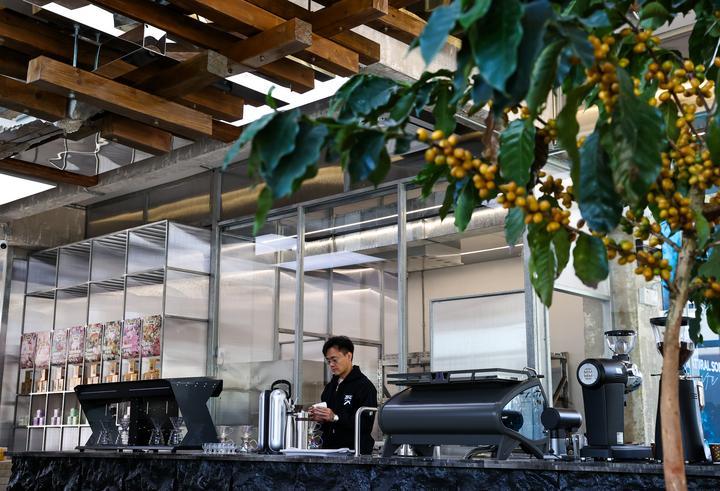 2025年12月10日,旅居云南的韓君瑋在位于昆明的南來(lái)盛咖啡店內(nèi)制作咖啡。韓君瑋自清華大學(xué)畢業(yè)后,已在咖啡行業(yè)耕耘十余年。2024年,他受聘成為云南一家老字號(hào)咖啡品牌的品牌總顧問(wèn),從此投身到云南咖啡的產(chǎn)品研發(fā)和品牌推廣工作中。一年多來(lái),他每月都會(huì)來(lái)到昆明,短則幾天,長(zhǎng)則數(shù)周,開(kāi)啟了一種“半旅居、半工作”的生活模式?!霸颇巷L(fēng)景優(yōu)美、氣候宜人,我很享受這樣的狀態(tài)。”韓君瑋說(shuō)。
