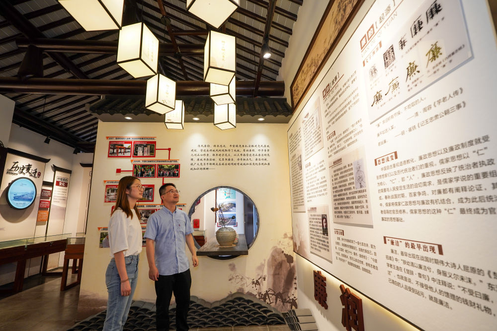 2024年7月4日,參觀者在蘇州市吳江區(qū)平望鎮(zhèn)廉潔教育基地鶯湖廉園內(nèi)參觀。新華社記者 李博 攝