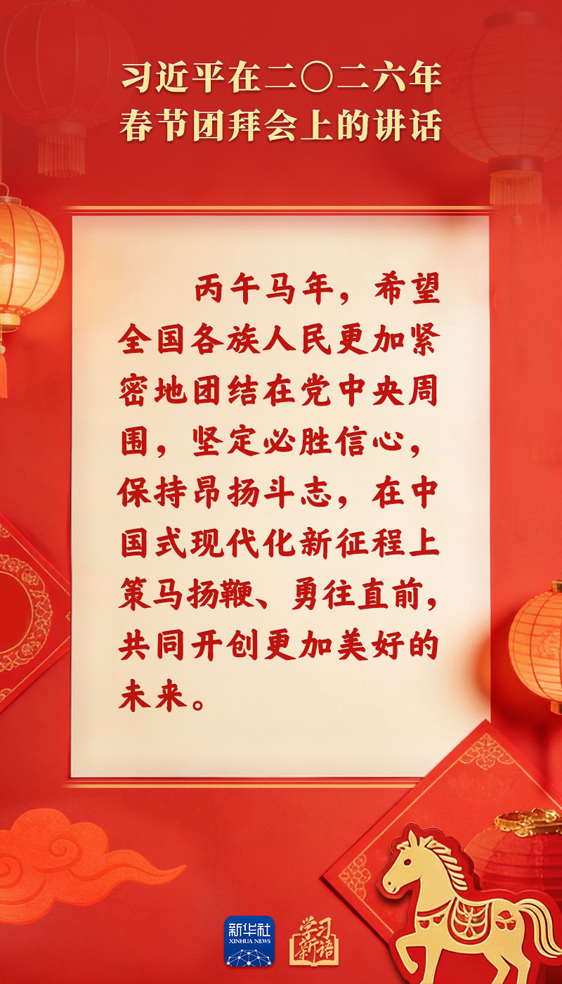 辭舊歲,賀新春。中共中央、國務(wù)院14日上午在人民大會堂舉行2026年春節(jié)團拜會。習近平總書記發(fā)表講話,代表黨中央和國務(wù)院,向全國各族人民,向香港特別行政區(qū)同胞、澳門特別行政區(qū)同胞、臺灣同胞和海外僑胞拜年。