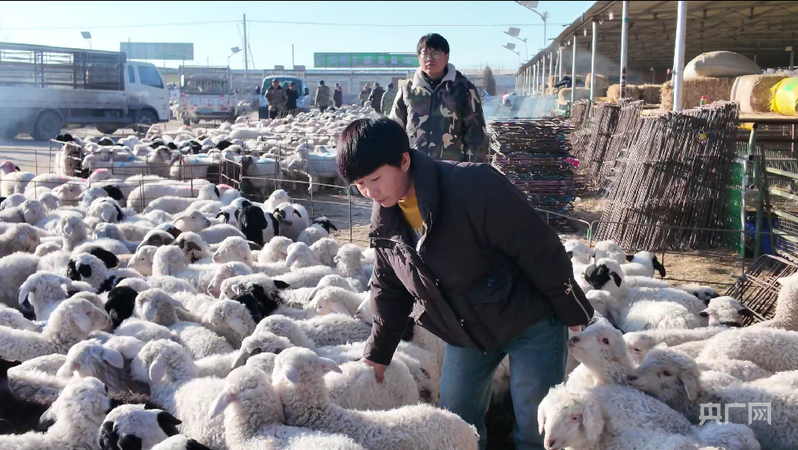蒲萬林在古浪縣牛羊交易市場挑選羊羔(央廣網記者 寇剛 攝)