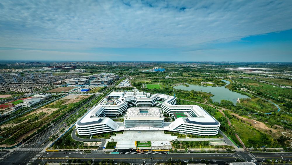 2023年6月30日,中共中央政治局召開(kāi)會(huì)議,審議《關(guān)于支持高標(biāo)準(zhǔn)高質(zhì)量建設(shè)雄安新區(qū)若干政策措施的意見(jiàn)》。此后,一攬子特殊支持政策陸續(xù)落地雄安新區(qū)。2023年10月16日,雄安宣武醫(yī)院開(kāi)診。首都醫(yī)科大學(xué)宣武醫(yī)院派來(lái)管理團(tuán)隊(duì)及骨干醫(yī)生,重點(diǎn)服務(wù)疏解人員和新區(qū)群眾,并輻射京津冀地區(qū)。這是2023年9月30日拍攝的雄安宣武醫(yī)院(無(wú)人機(jī)照片)。