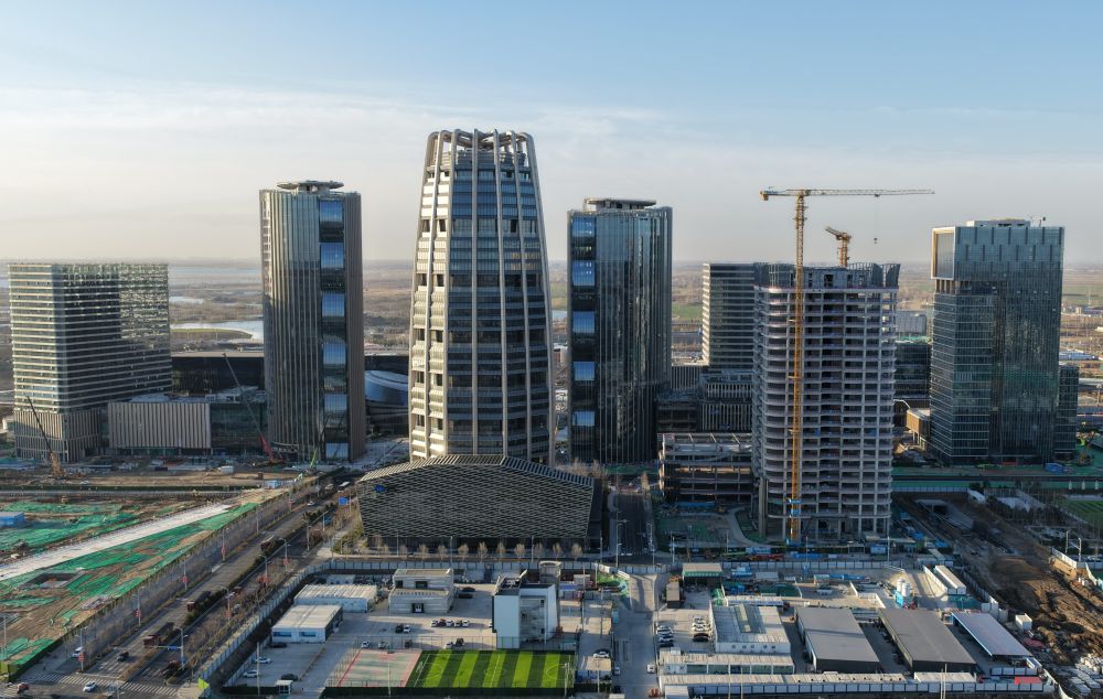 雄安商務(wù)服務(wù)中心是新區(qū)首個(gè)標(biāo)志性城市建筑群,建筑風(fēng)格以東方美學(xué)立體展現(xiàn)雄安特色風(fēng)貌,功能包括酒店、專家公寓、商業(yè)等。2022年底,該中心投入使用。通過(guò)綠色建筑技術(shù)的集成與創(chuàng)新,這里實(shí)現(xiàn)了綠建三星標(biāo)準(zhǔn)全覆蓋,項(xiàng)目預(yù)計(jì)每年可節(jié)約用電1100萬(wàn)度。這是2022年3月28日拍攝的雄安商務(wù)服務(wù)中心。