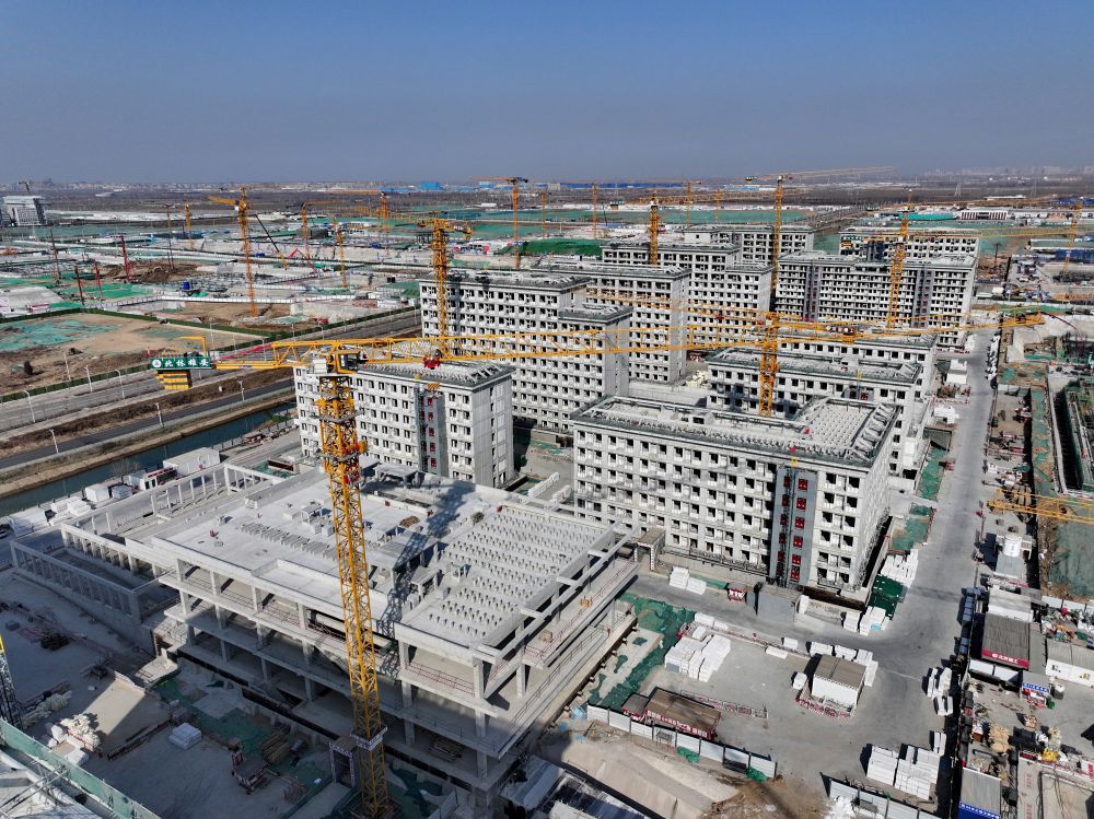 2021年是雄安新區(qū)大規(guī)模開(kāi)發(fā)建設(shè)向縱深發(fā)展的關(guān)鍵一年。容東片區(qū)是雄安新區(qū)開(kāi)發(fā)建設(shè)的先行區(qū)域,擔(dān)負(fù)著承接北京非首都功能疏解和安置回遷群眾的重要任務(wù)。這是2021年4月8日拍攝的雄安新區(qū)容東片區(qū)安置房項(xiàng)目建設(shè)現(xiàn)場(chǎng)(無(wú)人機(jī)照片)。2021年10月,容東第一批安置房開(kāi)始交付。