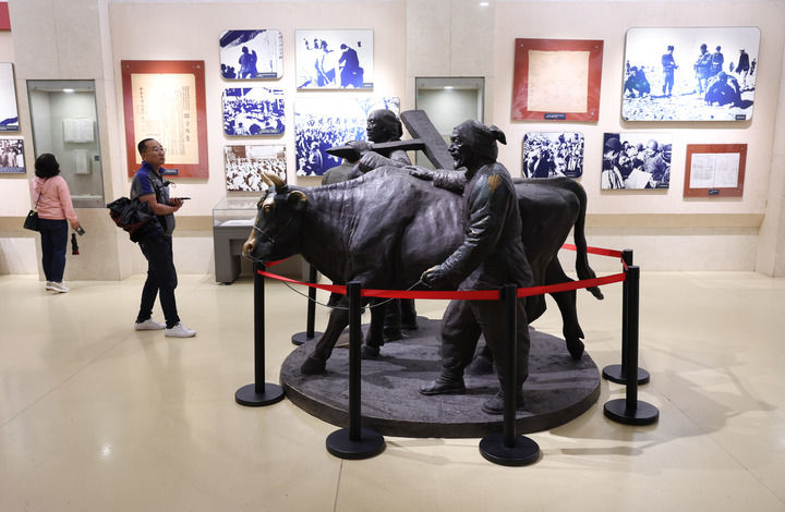 2025年10月8日,游客在河北平山縣西柏坡紀(jì)念館參觀。 新華社發(fā)(梁子棟攝)