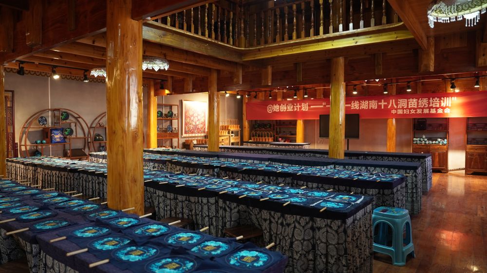 “十八洞片區(qū)苗繡鄉(xiāng)村振興示范基地”研學教室。新華社記者 戴斌 攝