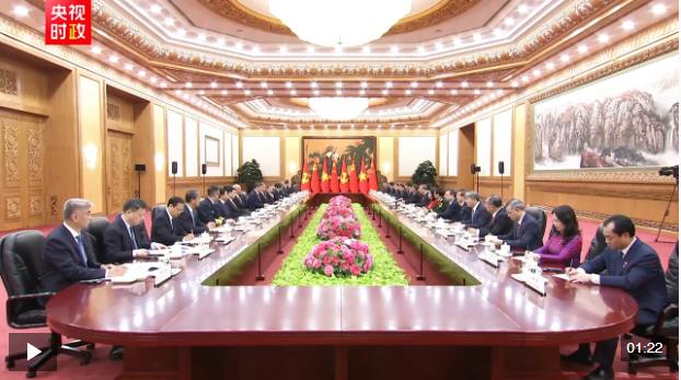 習(xí)近平指出,你當(dāng)選越南國(guó)家主席后第一時(shí)間到訪中國(guó),體現(xiàn)了你對(duì)發(fā)展中越關(guān)系的高度重視。無(wú)論國(guó)際形勢(shì)如何變化,中方始終將越南作為周邊外交優(yōu)先方向,愿同越方秉持初心、賡續(xù)友誼,團(tuán)結(jié)協(xié)作、相互支持,高質(zhì)量推進(jìn)全面戰(zhàn)略合作,加快構(gòu)建更高水平具有戰(zhàn)略意義的中越命運(yùn)共同體。