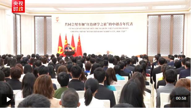 習近平表示,不久前,我收到越南河內國家大學外語附中等學校的同學們用中文寫來的信,分享了參加“紅色研學之旅”的深刻感悟,立志做中越友誼的傳承者和傳播者,我感到很欣慰。他強調,青年是推動社會發(fā)展進步的有生力量,也是中越兩黨兩國事業(yè)薪火相傳的接棒人,中越友好的未來在青年。