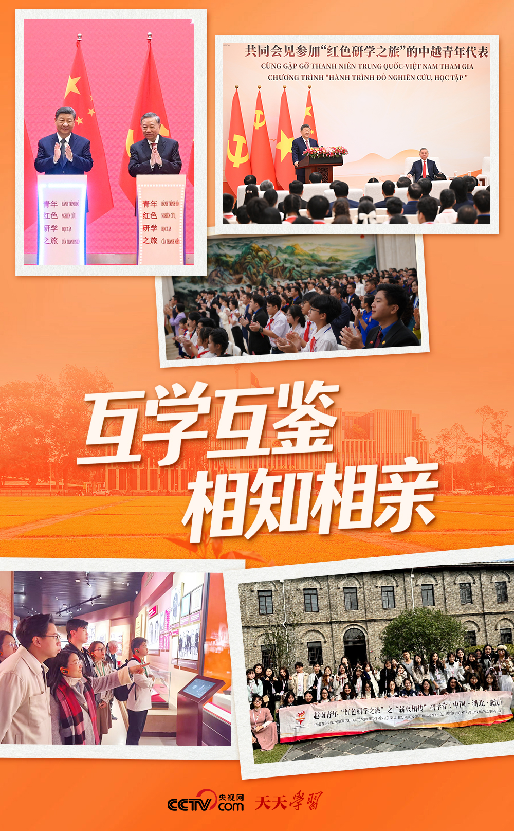 2025年4月15日,習(xí)近平總書記在訪問越南期間宣布,中方將在今后3年邀請越南青年赴華開展“紅色研學(xué)之旅”,沿著兩黨兩國老一輩領(lǐng)導(dǎo)人的革命足跡,探尋中越友好的紅色基因,感受中國式現(xiàn)代化的萬千氣象,為兩國各自社會主義事業(yè)和構(gòu)建具有戰(zhàn)略意義的中越命運共同體凝聚青春力量。當(dāng)日,中越兩黨兩國領(lǐng)導(dǎo)人與雙方代表共同按下按鈕,啟動“紅色研學(xué)之旅”項目,為兩國青年搭建起跨越國界、聯(lián)結(jié)初心的友誼橋梁。