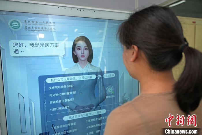 一臺搭載醫(yī)療大模型的“AI數(shù)字人”正在與患者對話。王揚(yáng)攝