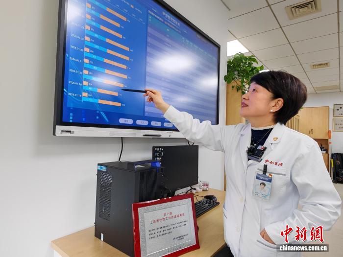 張玉俠為記者講解“護(hù)理管理駕駛艙”顯示的相關(guān)信息。中新網(wǎng)記者 陳靜 攝