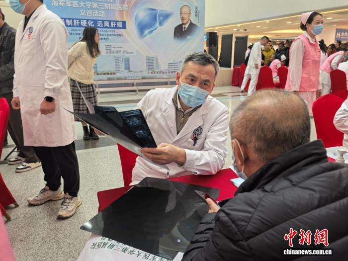 專家18日在海軍軍醫(yī)大學(xué)第三附屬醫(yī)院(上海東方肝膽外科醫(yī)院)嘉定院區(qū)為民眾開展義診咨詢。(中新網(wǎng)記者 陳靜攝)